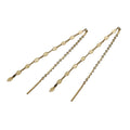 These earrings boast a sleek and modern threader design that elegantly threads through your earlobe, creating a dynamic and eye-catching effect. The adjustable length allows you to customize the drape to your preference, offering endless styling possibilities. Adding a touch of luxury and radiance, we've adorned these earrings with a layer of 14Karat gold vermeil. The gold vermeil finish enhances their beauty, creating an alluring contrast against the sterling silver base. The versatile style of these earrings ensures that they complement a wide range of outfits, from casual to formal, making them the perfect choice for any occasion.
